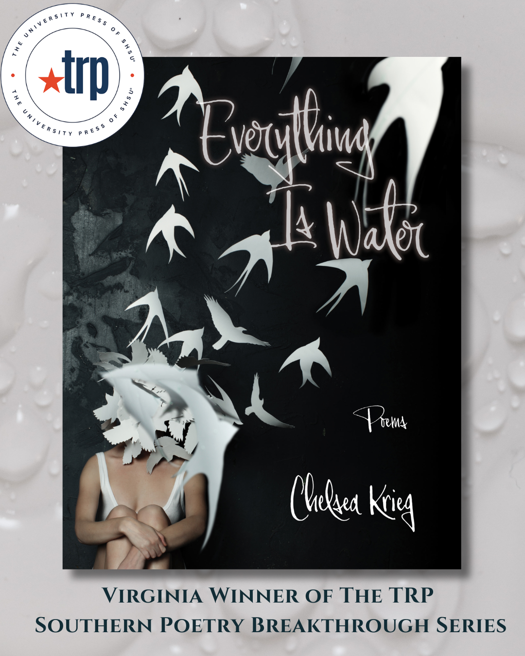 Everything Is Water is an open letter to caregivers as the speaker grapples with her partner’s life-threatening illness, pregnancy and new motherhood, and marriage. Growing up on the Virginia coast, the speaker knows the water’s danger and allure—asks, what is beneath, what has control in so much open and unknown space? The speaker continues to feel this unease in everything as she navigates fear, identity, and loss. Everything is water. Everything is the surface tension created by the unknown. The collection often returns to the water and those inhabiting it, but it also looks to winged creatures, those on land, and those who are in between elements as they wrestle with their own survival. Water is an element that sustains and devours. When danger comes, we wonder when it will end. We ask how we can live with loss. Is it easier to run away? To let go? Everything Is Water leaves the reader suspended, treading water alongside the speaker as she seeks to answer these questions.